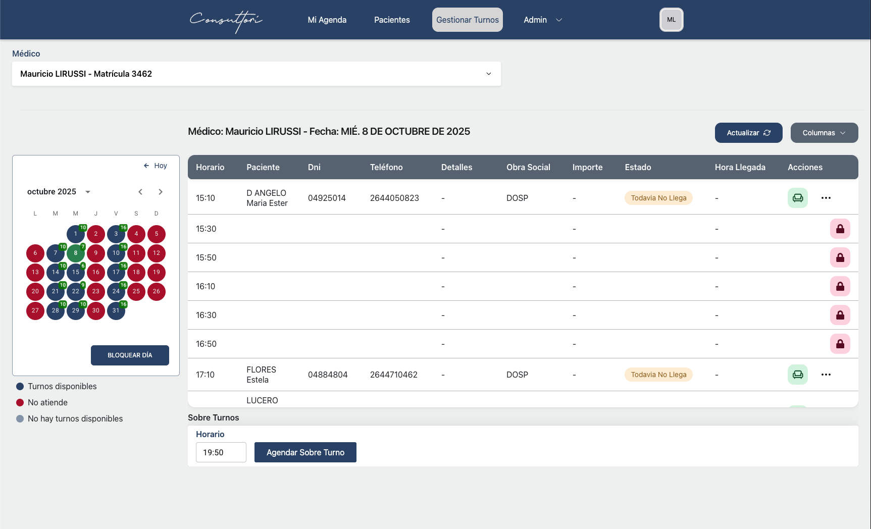 - Turnos programados y sobreturnos.